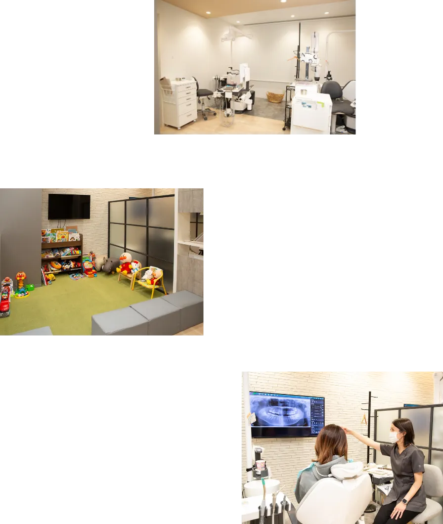 治療中もお子さんの様子が見えるため、親御さんが安心して治療を受けていただける環境づくりを心がけています。